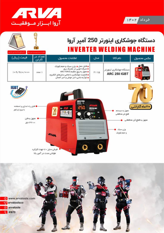 اینورتر ۲۵۰ آمپر آروا کد ۲۱۱۵