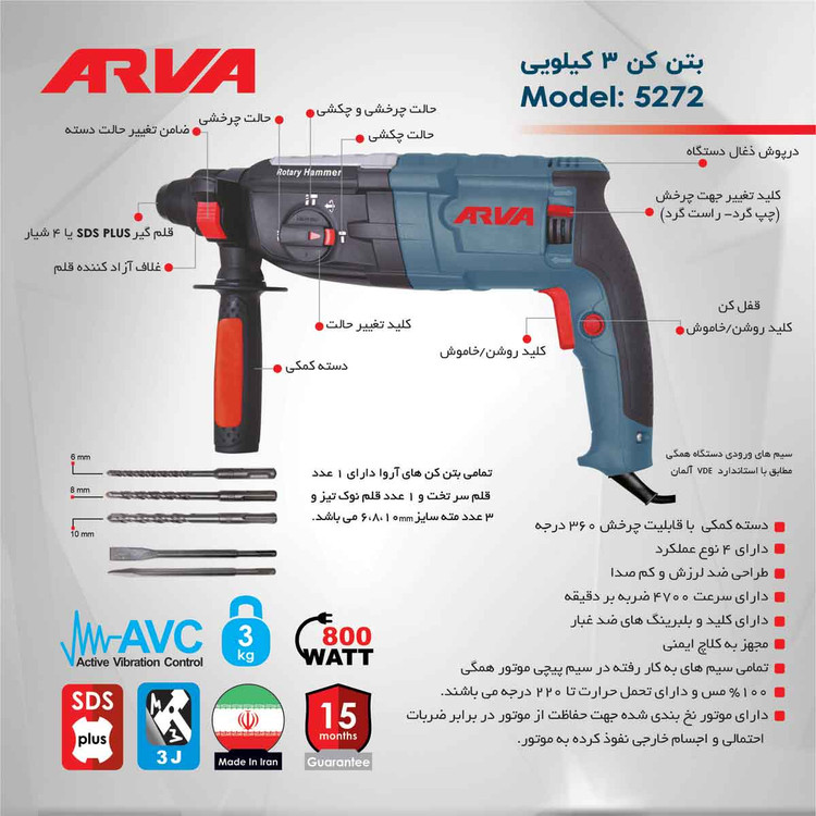 دریل بتن کن 3 کیلویی 800 وات آروا مدل 5272